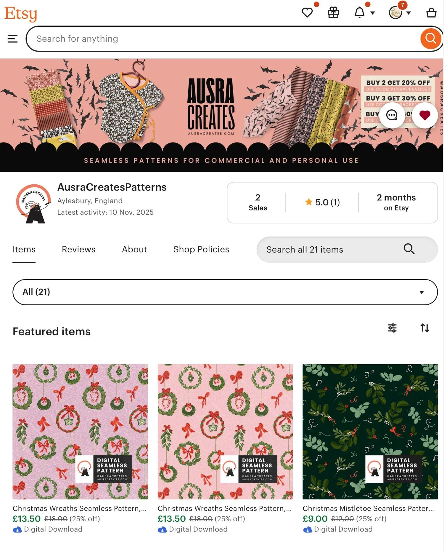 Explore my Etsy designs and find the perfect artwork to support your growing creative business.